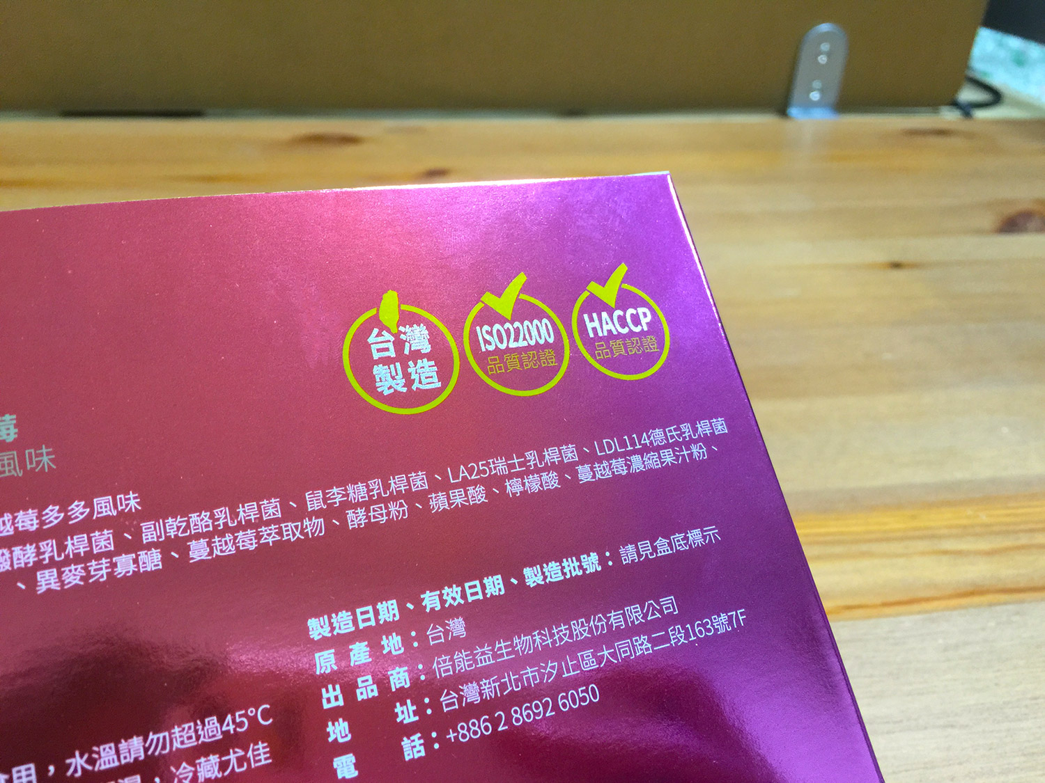 蜜亦康通過ISO 22000和HACCP的國際認證,這點在盒子上都看得一清二楚。