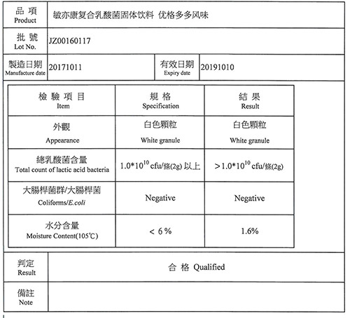 品名:敏亦康复合乳酸菌固体饮料 優格多多風味